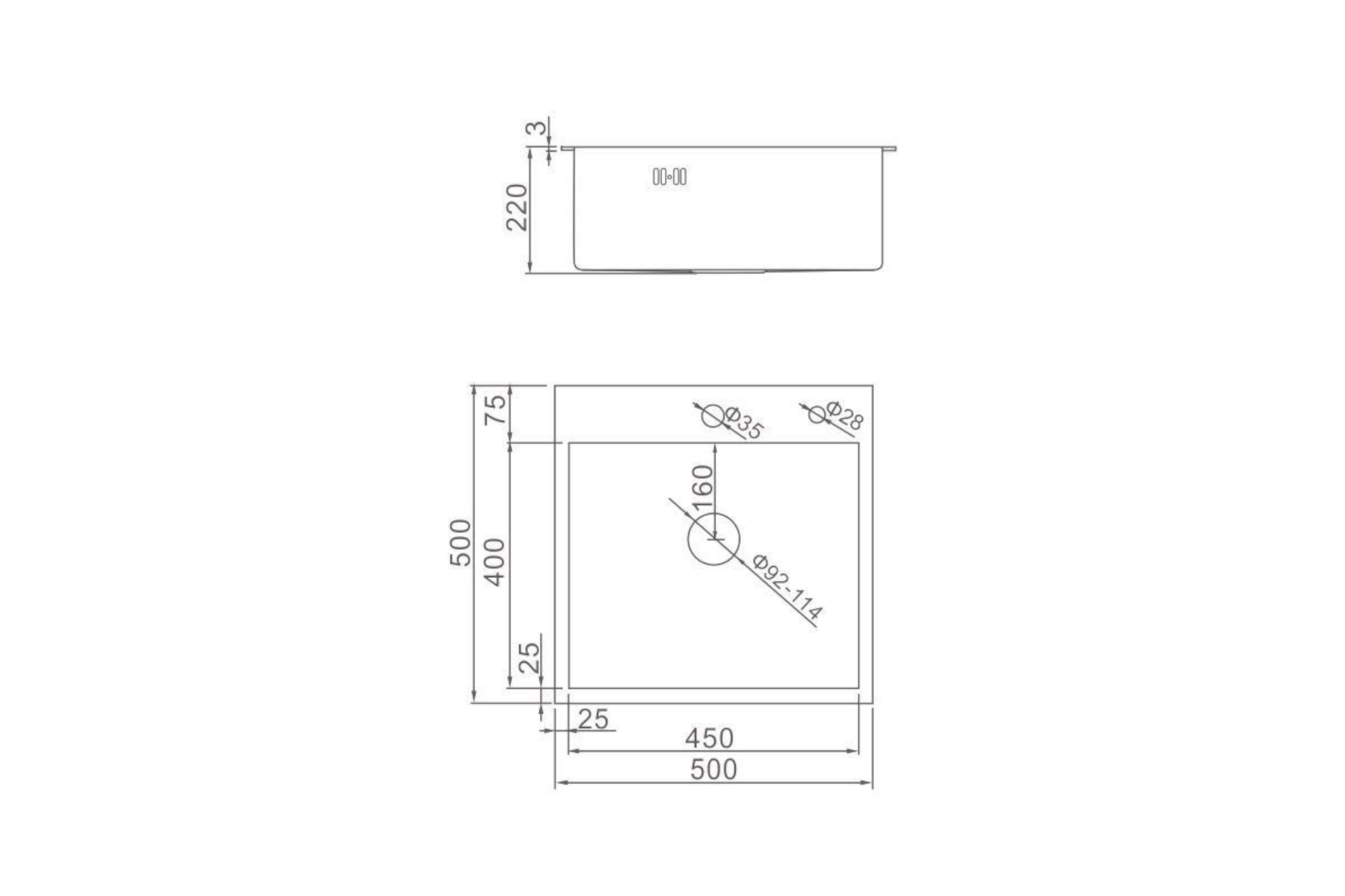 —Мойка врезная 50х50 см сатин